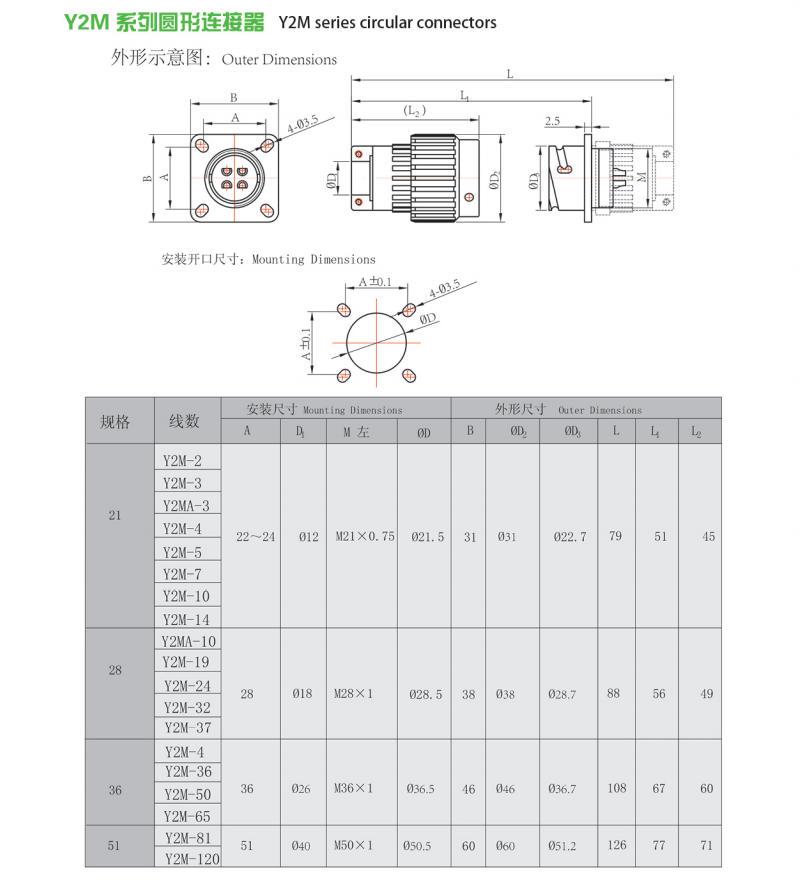 - Y50系列航空插頭