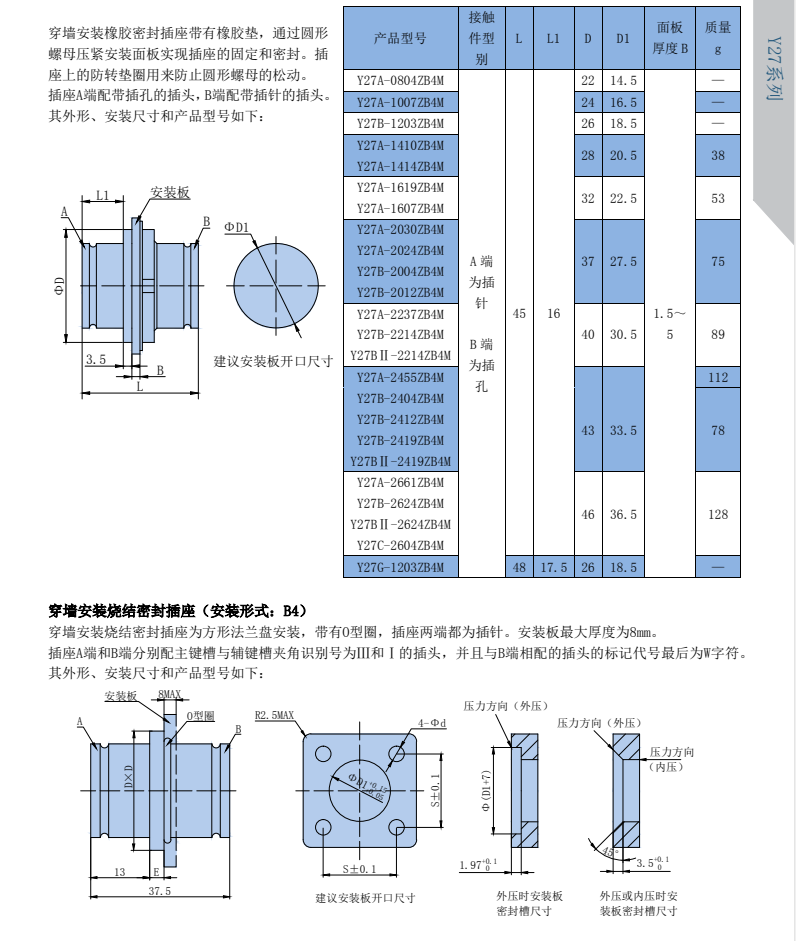 Y27-2255ZJB4H穿艙式真空密封連接器,55根接插件,額定電流5A,耐壓1200V,穿艙插座,穿墻厚度達(dá)10mm,兩端配套插頭,推拉鎖緊,方便快捷。插座兩端都是可伐合金插針,插頭是對(duì)應(yīng)插孔,一般用于航空航天測(cè)試平臺(tái)真空檢測(cè)。
