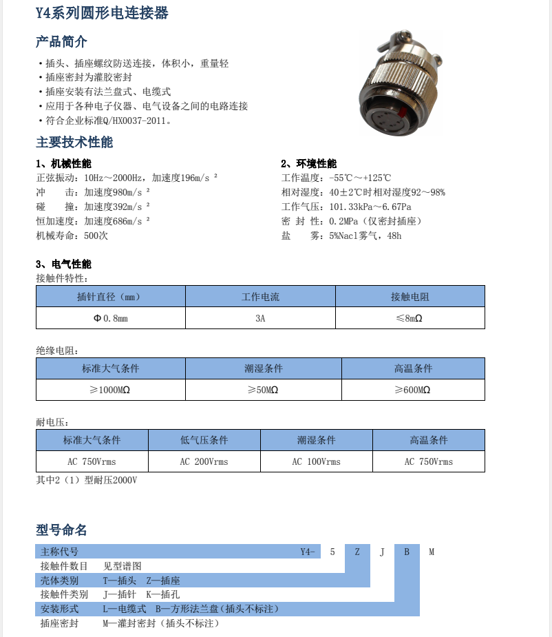 - Y50系列航空插頭