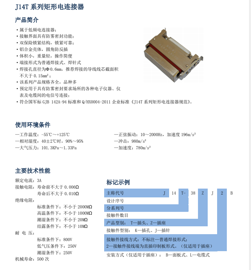 J14T系列矩形電連接器,低頻連接器,接觸界面具有防霧密封功能,雙保險(xiǎn)鎖緊結(jié)構(gòu),鎖緊可靠,焊接式,適用于室外潮濕工作環(huán)境。