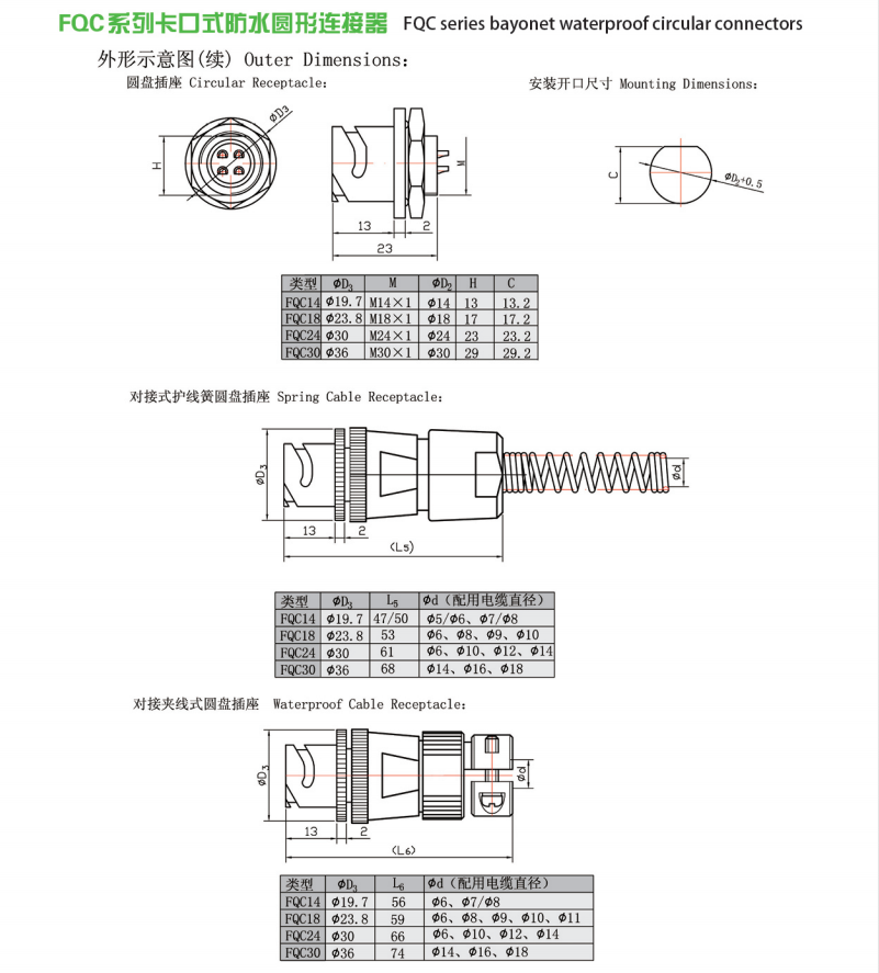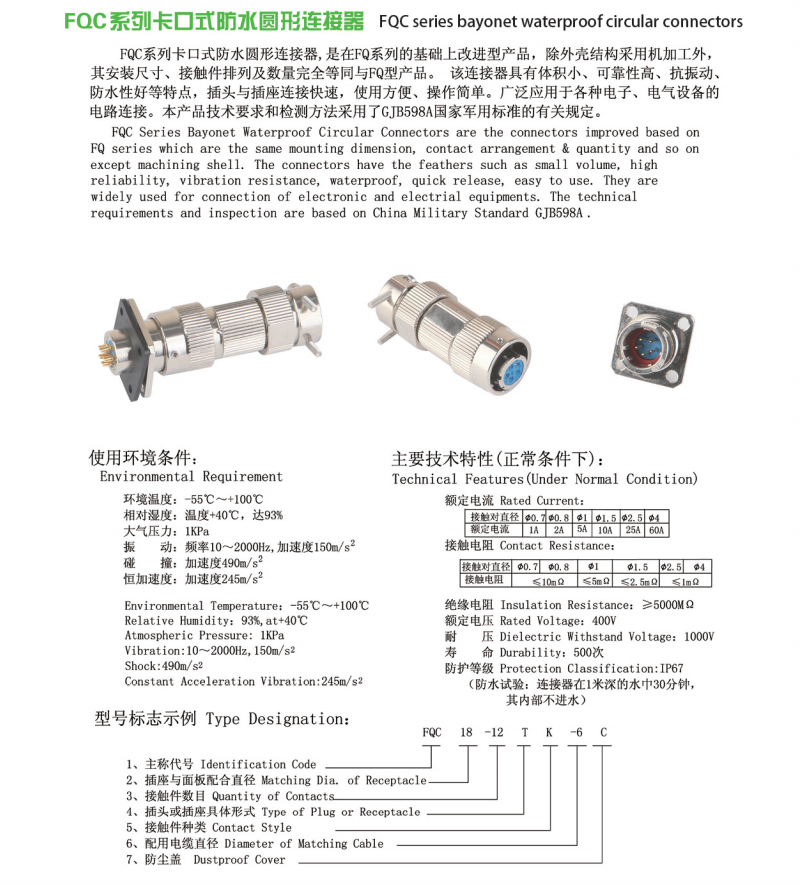 FQC系列圓形電連接器,是FQ系列改進(jìn)產(chǎn)品,外殼體采用機(jī)加工,安裝尺寸,接觸件排列完全相同,體積小,抗振動(dòng),防水性能好,連接快捷,廣泛用于各種電子設(shè)備的線路連接。