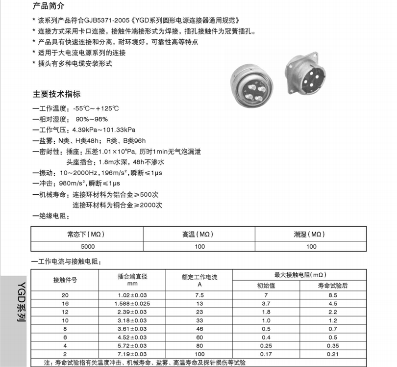 YGD系列大電流電纜連接器