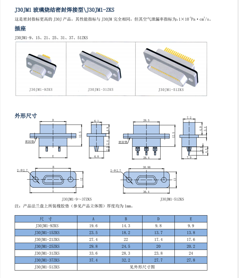 J30JM1-9ZKS玻璃燒結(jié)密封插座