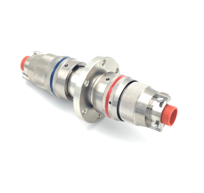 30A 4針 加長型穿艙 玻璃燒結(jié)插座:圓形法蘭插座,加長型,穿墻厚度達10mm左右,玻璃燒結(jié)插座,密封性能好,用于真空環(huán)境監(jiān)測,傳輸速度快,信號穩(wěn)定,里外插頭有鍵位、顏色分類,防止誤插。